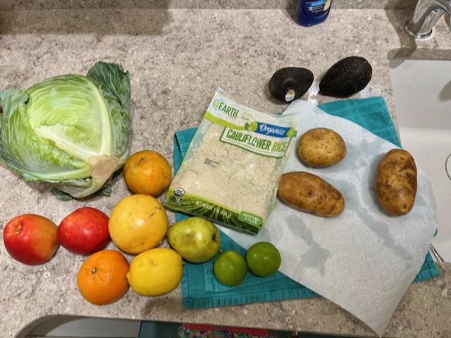 The produce pickup has a lot of great items. We can’t eat the mushrooms and I think the cauliflower rice was leaking. I’m not sure the avocados are salvageable.