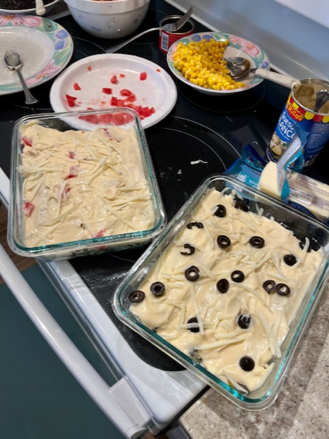 Enchiladas for the week. I found the can of cheese sauce at the Dollar General. We tasted it and it’s pretty good. So I decided to use it instead of red sauce. We added corn this time. They smell good!
