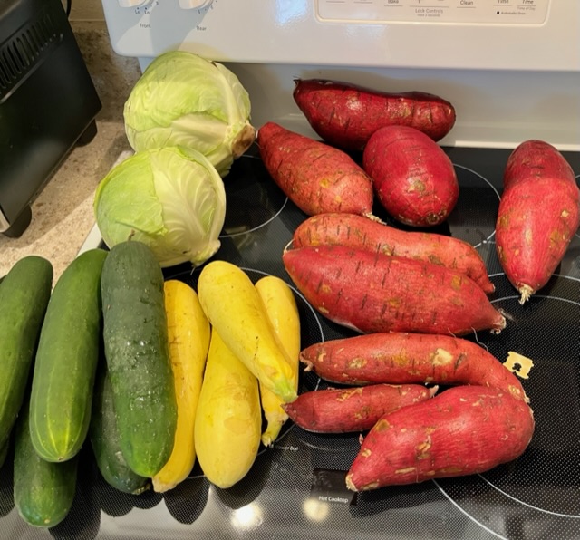 Wed veggie pick up had some good stuff too. I’m not sure if they gave me sweet potatoes or yams. My oldest will be in town June 26 so I’ll see if she wants them. The youngest and I don’t eat them.