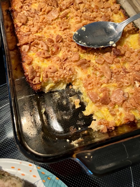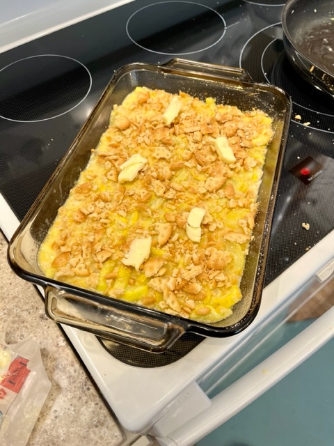The new gluten free squash casserole was delicious! I modified the recipe with the GF crackers and I used the entire box. I certainly wasn’t counting out 35 crackers! I used medium cheddar because that’s what I had on hand.