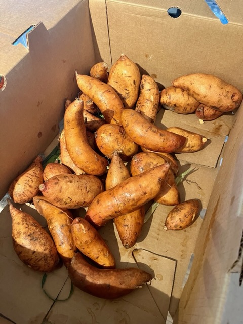 Produce pick up today had lots of sweet potatoes! I put them at the curb because I don’t eat them. The Amazon delivery lady asked if she could have them all. I said of course! She was very excited.