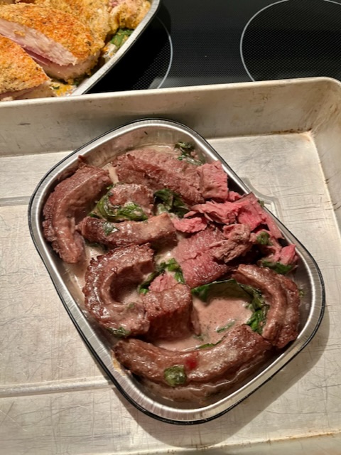 Food prep evening. Not quite as successful as this morning. The chicken & steak pinwheels were to be cooked at 350 deg.