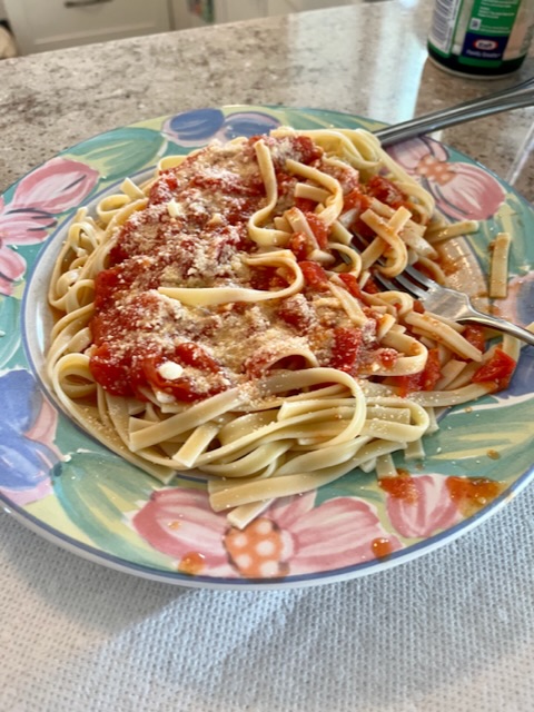 I put 2 containers, 3 cups each, in the freezer. I made the last of the fettuccine we had and added some Parmesan cheese. It’s very good. It made 2 meals. I have enough ingredients to make another batch.