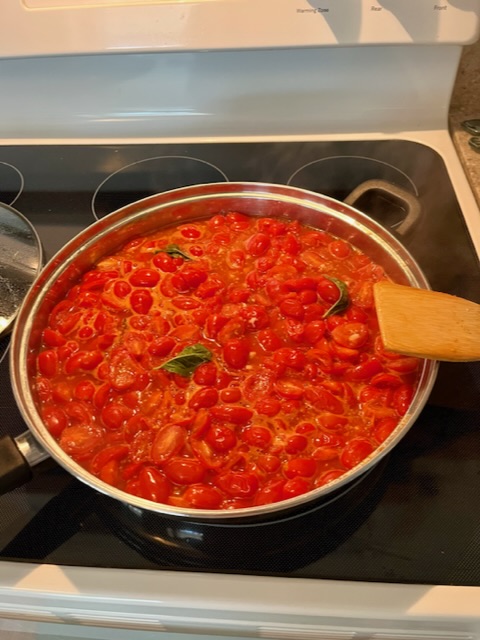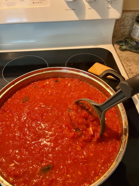 I used 8 pints and 6 of my Roma tomatoes and made marinara. I used the fresh garlic & fresh basil they gave me too. I added a dash of red pepper, dash of oregano, kosher salt. The recipe called for canned tomatoes with a cup of water. I did add a cup of water but next batch I won’t add as much. I simmered it and smashed the tomatoes.