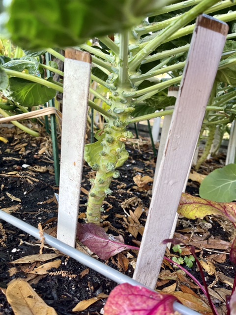 @RussellSprout Look at my baby Brussels Sprouts! My first time growing them. They are so cute! I have 4 plants and they do not get enough sun on the end of the planter. Next time I will locate them better.