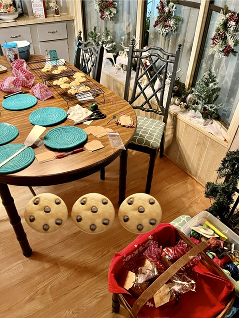 Cookie Detail was my job this morning. My aunt made the dough & she used an ice cream scoop to put them on the pans. I baked them, then bagged up the chocolate chip & oatmeal ones. I can’t touch the ginger snaps or peanut butter ones.