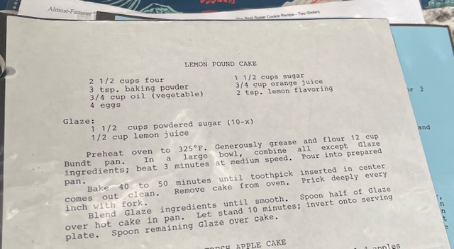 Tomorrow she’s making sugar cookies & meringue cookies. My cousin Sean made a Lemon Pound Cake.