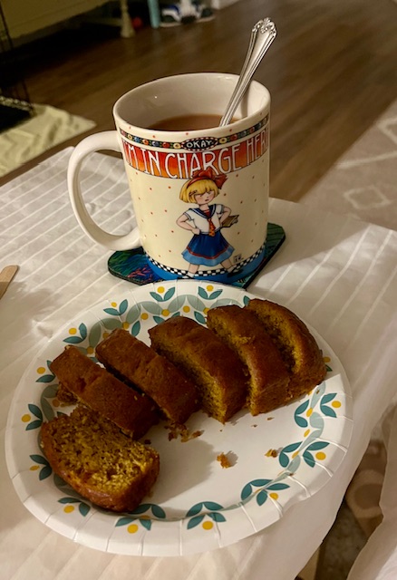 It was 48 deg at dawn so I had hot tea & warm pumpkin banana bread to start my day. It has warmed up to 57 deg.