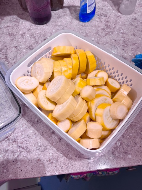 The green beans were too far gone. The squash had a lot of spoilage on the skin but otherwise it was fine. I have it prepped. I’ll steam it and make a casserole I used to make years ago. I’ll use Cream of Chicken soup.