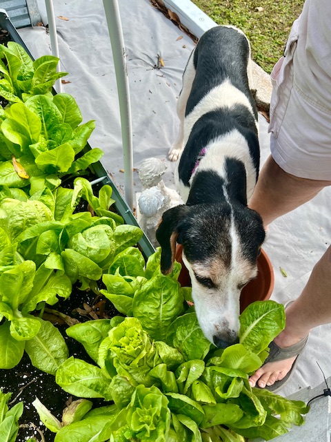 We did some gardening too. Elvis bit the broccoli leaf & spit it out. I’m surprised he didn’t taste the lettuce.