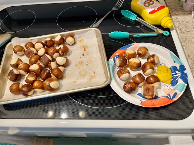 Well, these are quite sinful!!! Very good with mustard. They were in the freezer section. 5 minutes at 350 degrees or you can microwave them.