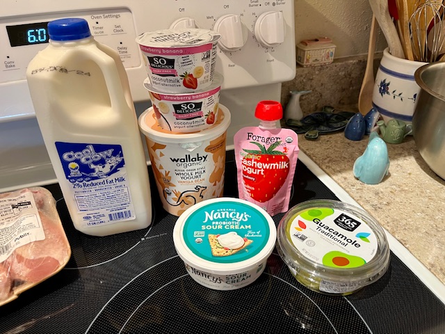 Tonight’s food pick up at the school was a lot. Some things we’re allergic to (all nuts, shrimp, mangos, almonds, mushrooms). Bummer we can’t eat the Reese’s! My friend is going to take those items, the sausages and bacon. Kiddo was excited to get candy! Usually I decline the shrimp so another family can have them. But this time they were in a bag of frozen items.