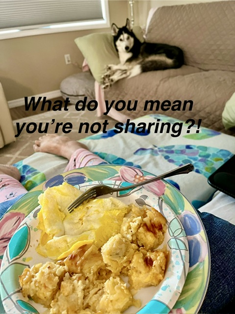 My friend needed me to watch Neeko so he’s here for a week. He sure looked shocked when I didn’t share my breakfast. I think he was pouting after I finished. LOL!