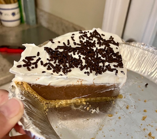 Dessert was a Chocolate Cream Pie a favorite of Kiddos. We put a serious dent in that!