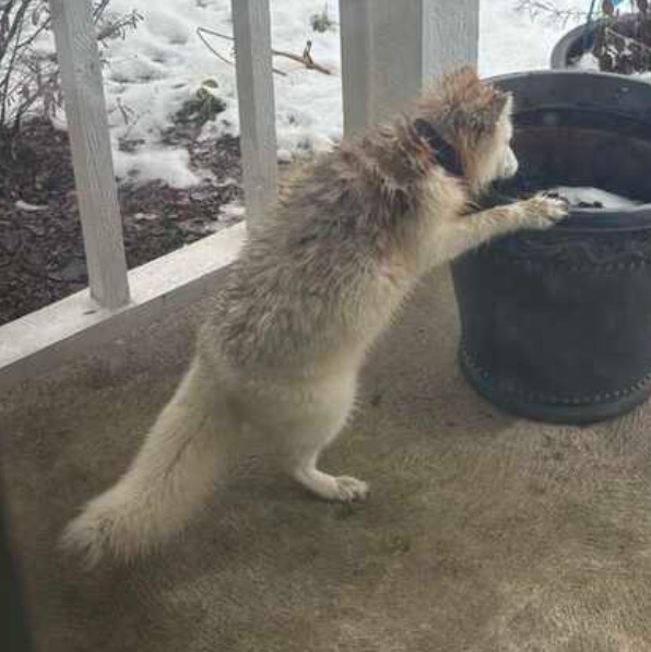 The officer had a microchip scanner and was trying to get close enough to scan for a microchip! He told me that he had a Siberian husky himself and his husky played the same “catch me if you can game” that this fox was playing. So he thought it was a husky mix or a miniature Eskimo dog mix.