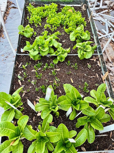 I need to thin the Bibb lettuce now that it’s big enough to get my big fingers in between the plants.