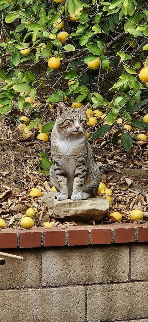 We have a Tahitian lime, a Meyer lemon, three mandarin varieties, and a makrut lime. We used to have a blood orange and a fourth mandarin tree, but they died. We also have a self seeded peach and nectarine which never properly fruit, a fig which does but the birds and bats always feast before we get the chance, and Cavendish bananas. We have self seeded mulberries, too. We also have a mango tree, which was my late stepfather's third or fourth try at growing one. This one survived, and fruited the year after he died. It was one tiny fruit that first year, and each year since, there have been more. This year, I think there were over a dozen. You'd be forgiven for thinking we're on some kind of acreage. Nope. Suburban, 1/8acre block with a four bedroom home taking up most of the room. We are That House on the street where the home is somewhere behind all the garden. We have vegetable beds out back, too.