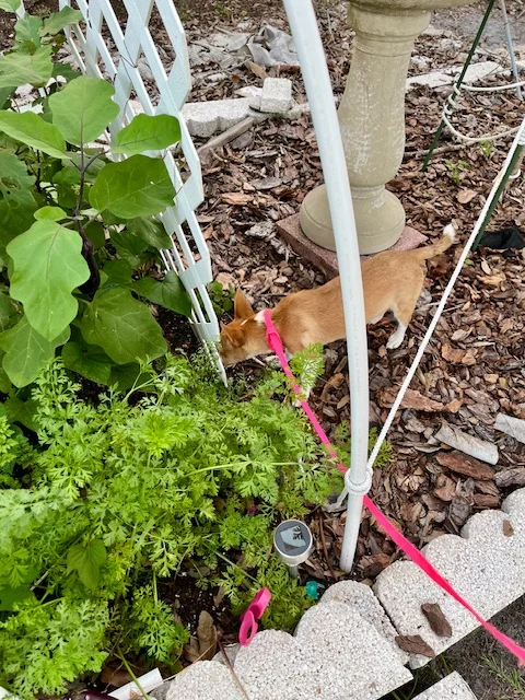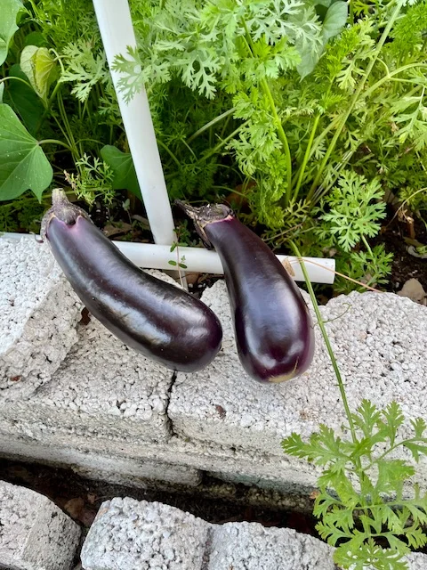 I picked 2 eggplants last night. I’ve decided I grew too many big tomatoes. 8 plants was overkill. I will do more Roma tomatoes, 4 plants is not enough. They all are about finished. I’ve read if you pick them before they’re ripe, the squirrels won’t poke them. So that’s what I’ve been doing. I’m going to grow some cherry tomatoes on my lanai this summer. They’re supposed to be ok in the heat. I’ll bring them inside the house during the storms.
