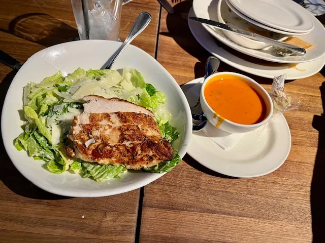 I ordered tomato soup, which was really heavy on the spices. My chicken Cesar salad was very good. I wasn’t able to finish it!