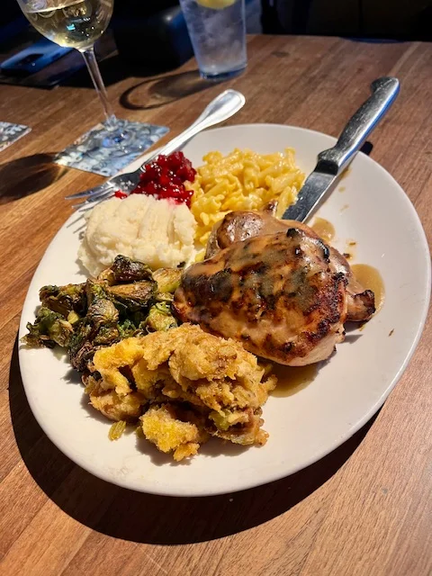 We have a Yard House located here too, I’m surprised that they have a Thanksgiving dinner as it is more of a sports bar. But I just looked at the menu and they are serving all the traditional favorites, plus you can order off the regular menu.