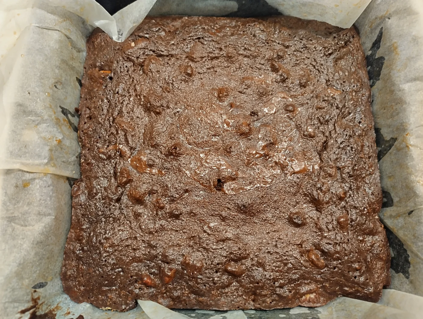 I found an old social media post where I'd modified another brownie recipe years ago. I'd added a tablespoon of cinnamon, a teaspoon of cayenne and a teaspoon of smokey paprika to make Mexican hot chocolate brownies. And finding that, I knew I had to try making them with my current favourite recipe. I added all that and included 100 grams of chopped pecans. I haven't cut it yet, but it smells good and the batter tasted great!