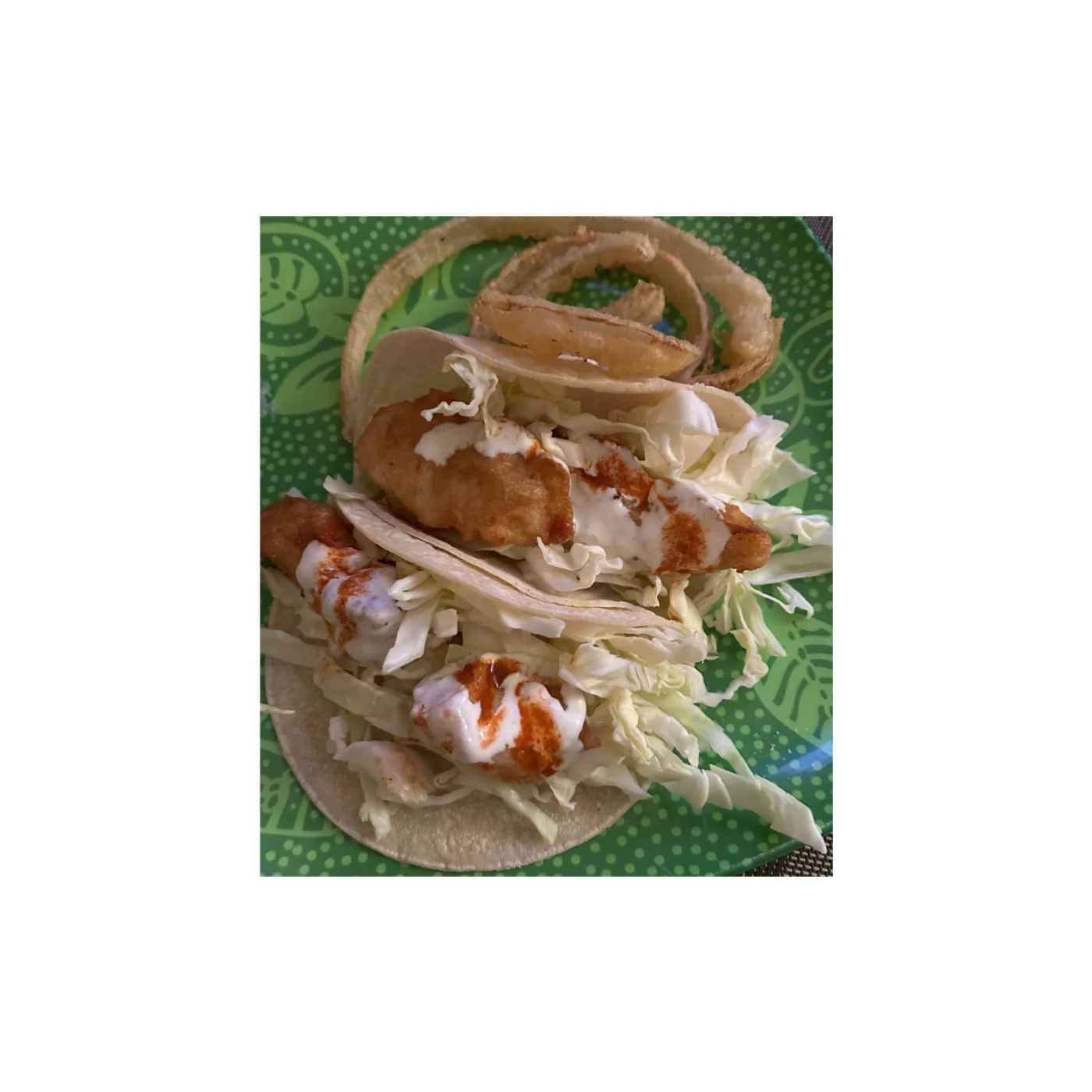 Made fish tacos for dinner tonight. I should have had only one. SO stuffed; probably because of the onion rings. 😅