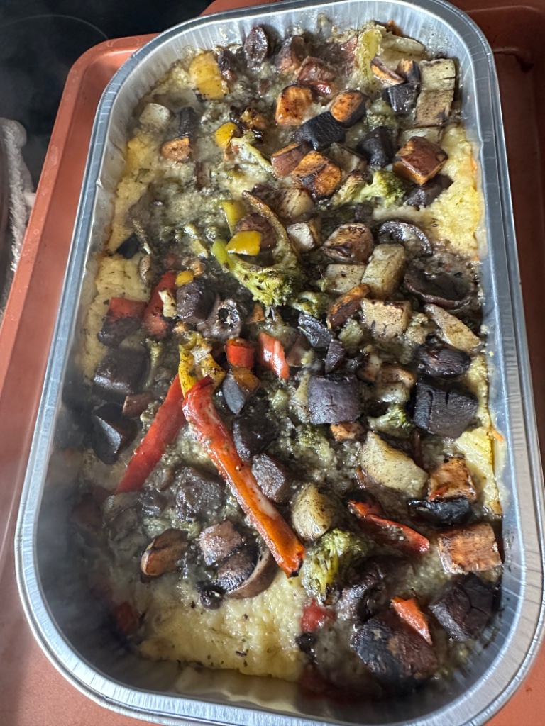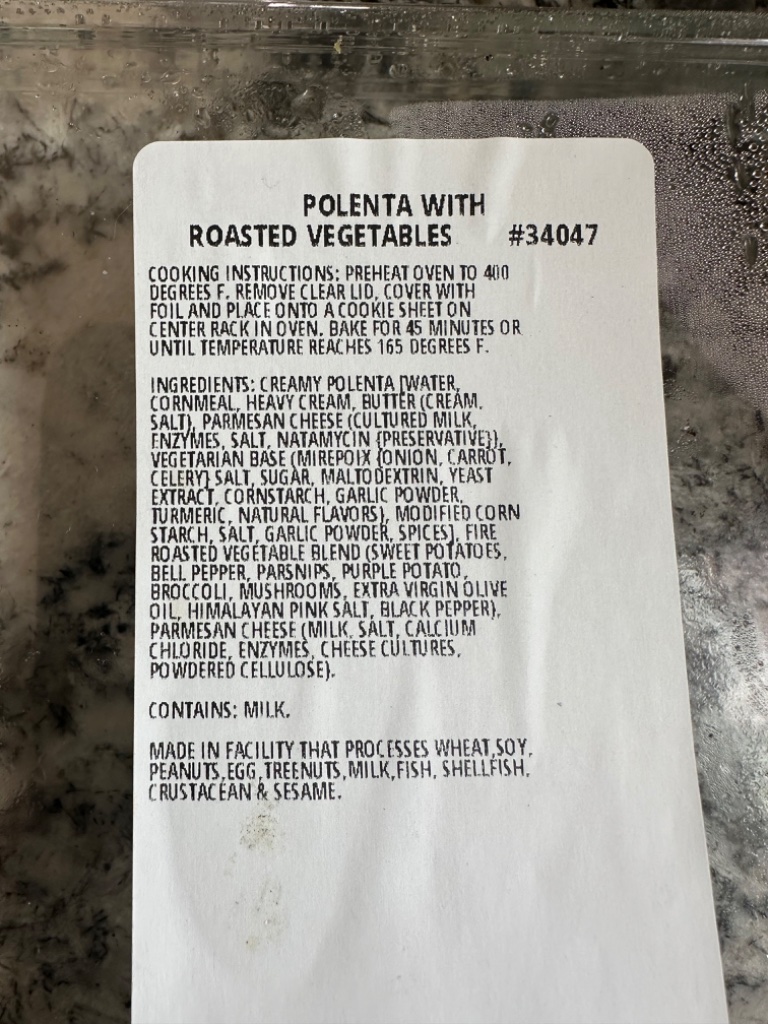 I don’t usually purchase ready made meals but this polenta and roasted vegetables entree from Costco looked too good to pass up.