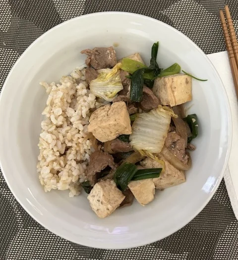 Tonight, I made buta dofu (pork tofu) and brown rice. Since I’m watching my sugars, I’ve been using monk fruit sweetener where things call for sugar, which this did. Tasted just about the same as if I used sugar, so I’d say it was a success!