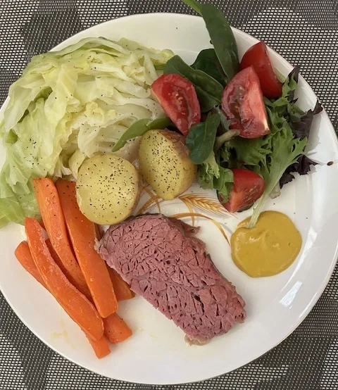 I hope it’s not bad luck or anything to eat this on other than St. Patrick’s Day 🍀, but I cooked corned beef and cabbage for tonight’s dinner! I didn’t want to wait, 🤭. I love corned beef.