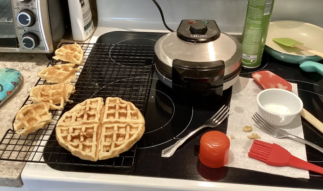 Food prep so far today was gluten free waffles made with oat milk. My oldest is sensitive to dairy. I froze 4 of them so she can pop them in the air fryer.