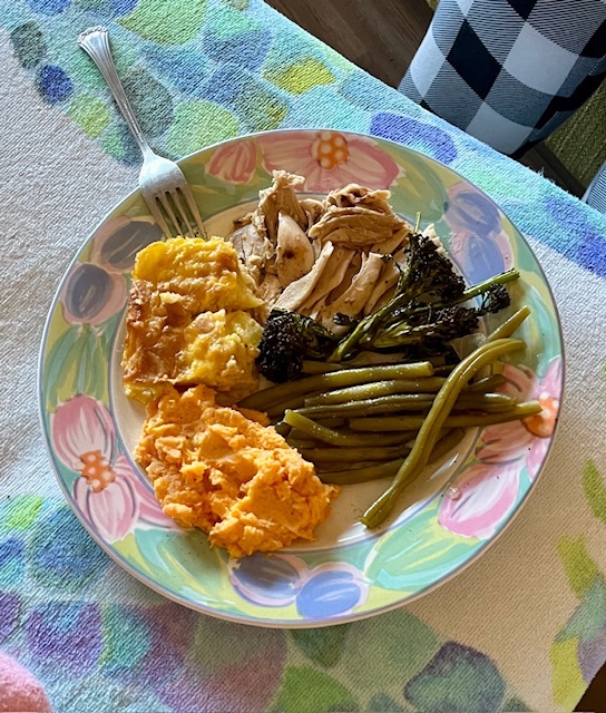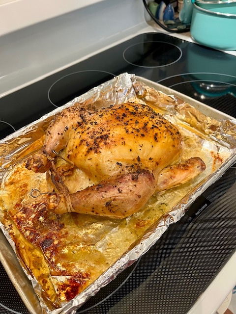We still have spiral sliced ham left. We are roasting a whole chicken with bay leaves and an orange in the middle. We will eat for days!