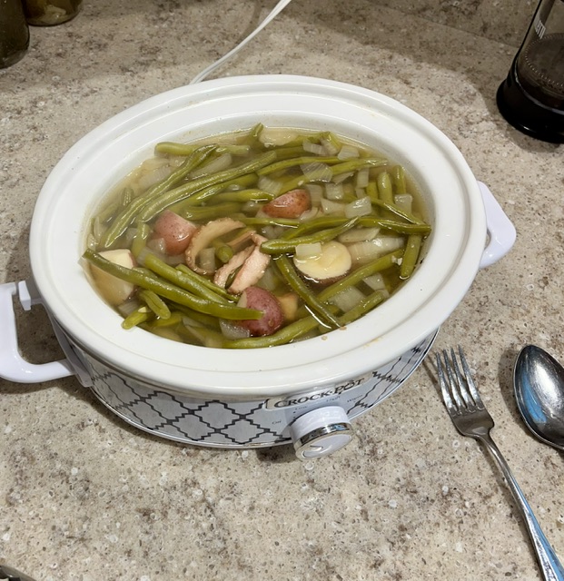 Since my youngest isn’t here, we will add ham to the green beans. Maybe some red potatoes too. I’ll put it all in the crockpot.
