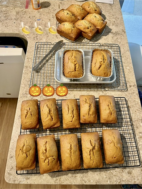 A few days ago I made GF mini loaves. Banana with mini chocolate chips and pumpkin. Most of them went in the freezer. So I have those to send too.