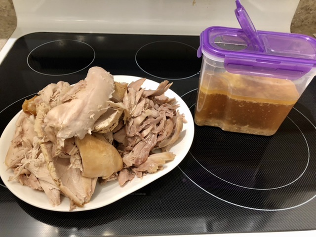 The bird ended up being over cooked but it has a good flavor. I split it into 4 bags, added some water to the drippings to make a broth and poured it over the meat. It was fine and I have 3 more bags in the freezer.