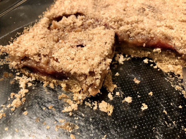 Now that I’ve tasted this recipe, I’m definitely cutting the sugar in the topping to 1/2 cup. It is too sweet! In the crust I added almost a teaspoon of cinnamon. In the topping, I used a teaspoon. It is tasty for sure.