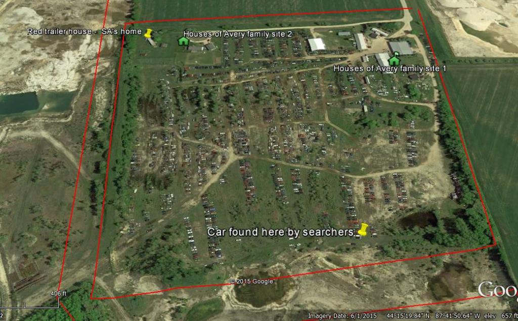Ok, I'm trying hard to figure this out. If he drew this correctly, I can see what you mean, it appears lights were seen in that field. How did he see TH turn left on 147? Can he really see across that field? Also, where the bus driver stops makes no sense to me. There's nowhere at all for a bus to turn around unless she goes onto Avery property, and turns around on the dirt roads in the junkyard.