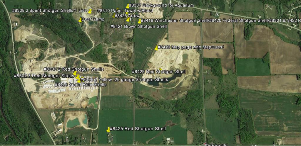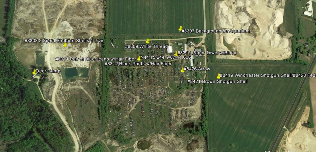 To my understand, this location was found walking away from where the rag with the brownish red colored stain on it was found. IIRC, the rag was found in the quarry.. I found it, just a few minutes ago~~but I can't seem to find it again~~~Missy, you got this at your fingertips???