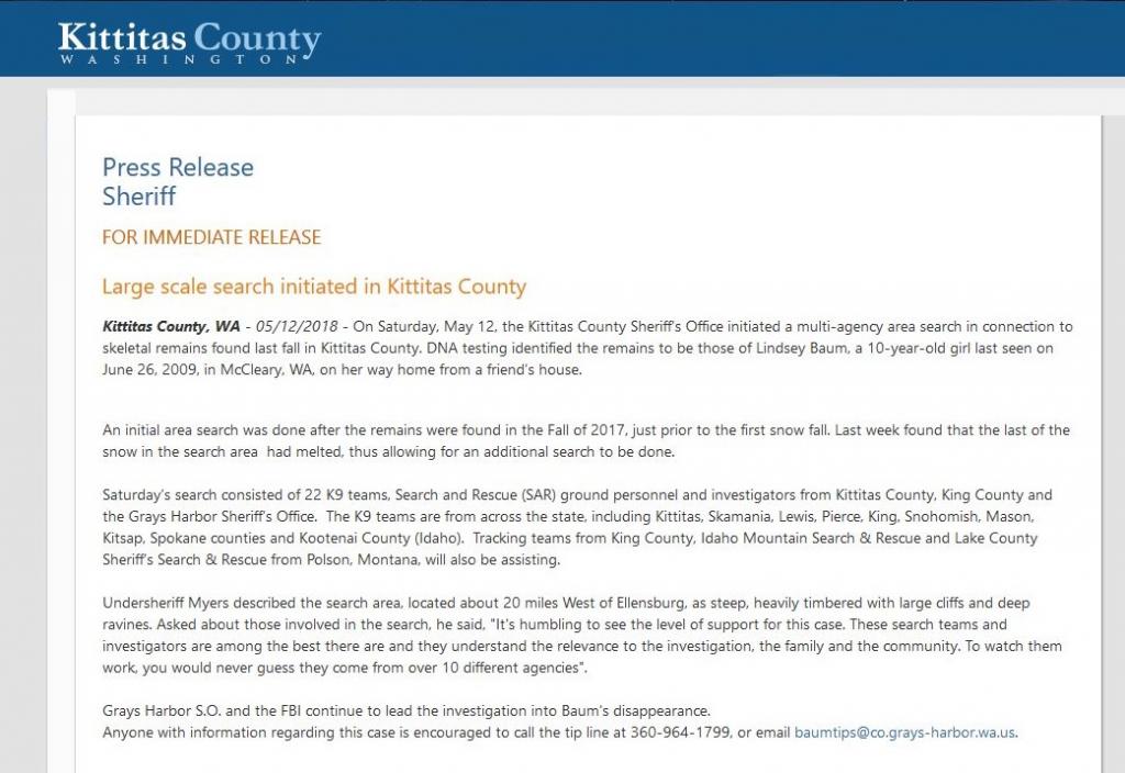 The Greenwater area is in Pierce county. The search for Lindsey was conducted in Kittitas County. I live in Thurston county.