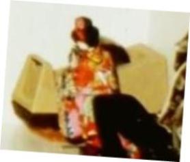 Great find on the Oriental doll images, otg. That tape holder does appear larger than most desk size versions for Scotch tape. Could the lighting obscure the transparency by making it appear to be a roll of dark tape?
