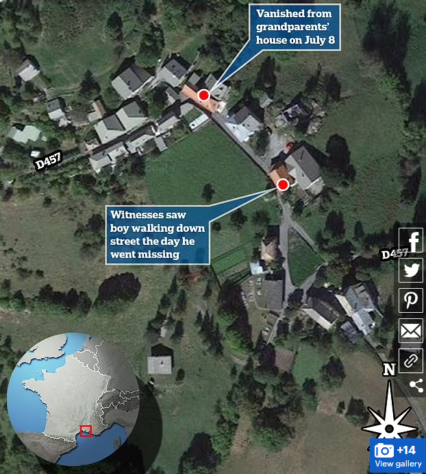 Is this the location of where he disappeared? If yes, does anyone know which building is his grandparent's home? Google Maps shows me a bed and breakfast or an inn (Nathalie de Pascal) and a pub of some sort called Chez les Ringuous a bit further down. I understand authorities are saying this is a tiny dead-end road with just 125 or so residents, but when I see an inn and a pub, I think tourists.