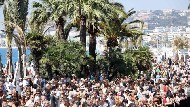In Nice, Prime Minister Manuel Valls joined thousands packing the seafront, scene of the Bastille day carnage, for a minute of silence in homage to the victims.