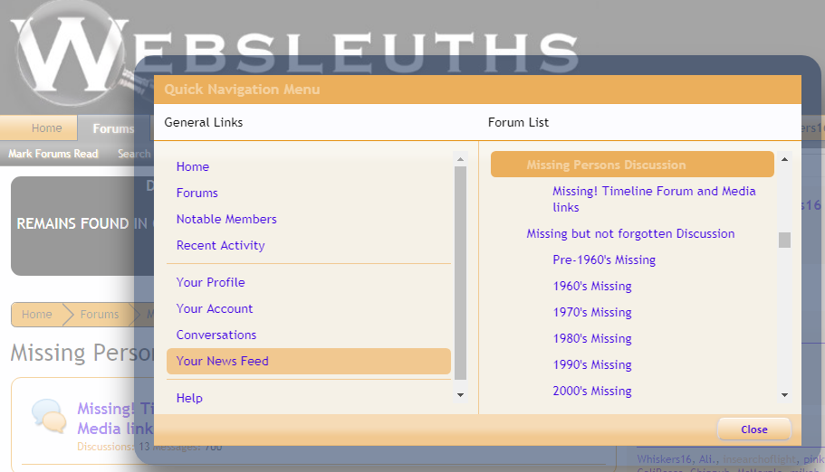 • Any content on Websleuths which is not in compliance with our rules may result in a warning, time-out, or thread ban being issued to the user at the Mods' discretion.