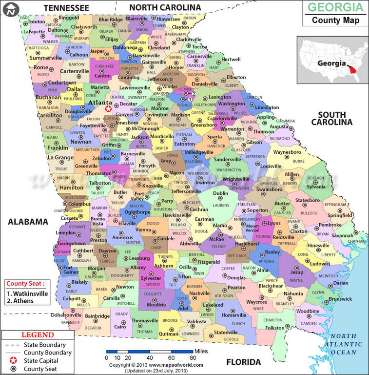 I'm not from Georgia and have no ideas about the counties there (All I know is everything seems to be named Peachtree in Atlanta, lol). There have been a few different counties here mentioned on this thread (Telfair, Cobb, etc), so posting this map showing the Counties for reference: