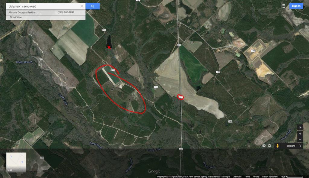 If you follow Old Prison Camp Rd. (Hwy 237) out to the Southeast from the Marathon station on 319/441, it curves and comes close to the pond to the East...the bodies could have been in between the pond and 237 (Old Prison Camp Rd.)