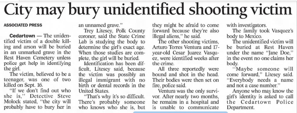 Reconstruction of the victim by Kelly and Marla Lawson.
