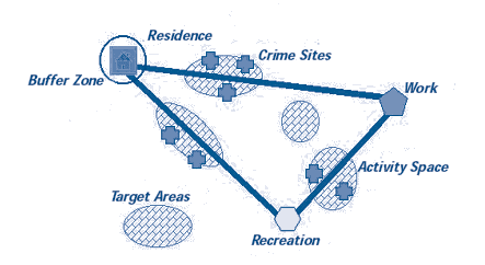 Crime is not random, it is either planned or opportunistic. According to the theory crime happens when the activity space of a victim or target intersects with the activity space of an offender.