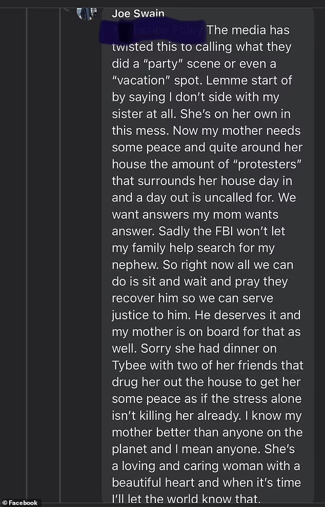 Leilani Simon's brother Joe Swain said in a Facebook message, 'I don't side with my sister at all. She's on her own in this mess.'www.dailymail.co.uk