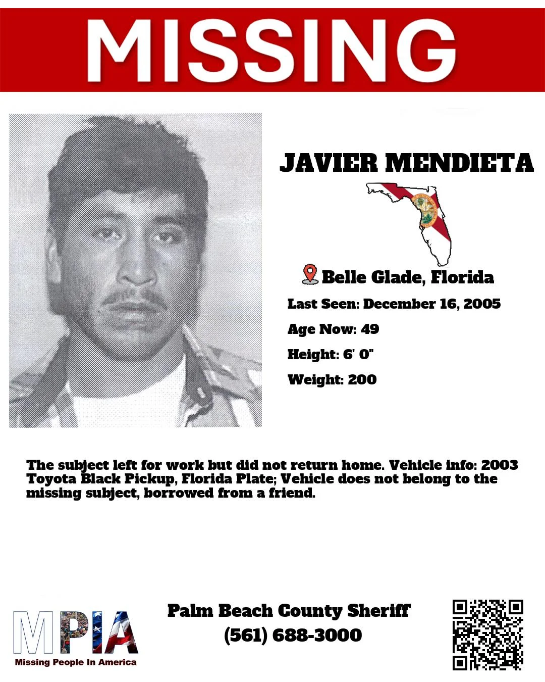 I found one person on the Florida database that very loosely fits the description (photo below). The facial features and age match, the only problem is that they were last seen on December which wouldn’t leave a lot of time for the body to fully decompose the way John doe’s was.