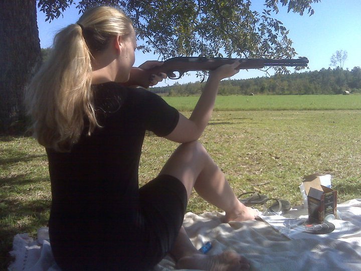 Ignore that I look like crap! And why yes I am sitting on the ground shooting a gun for hours in a dress! That's how we do it round here! :laughing: