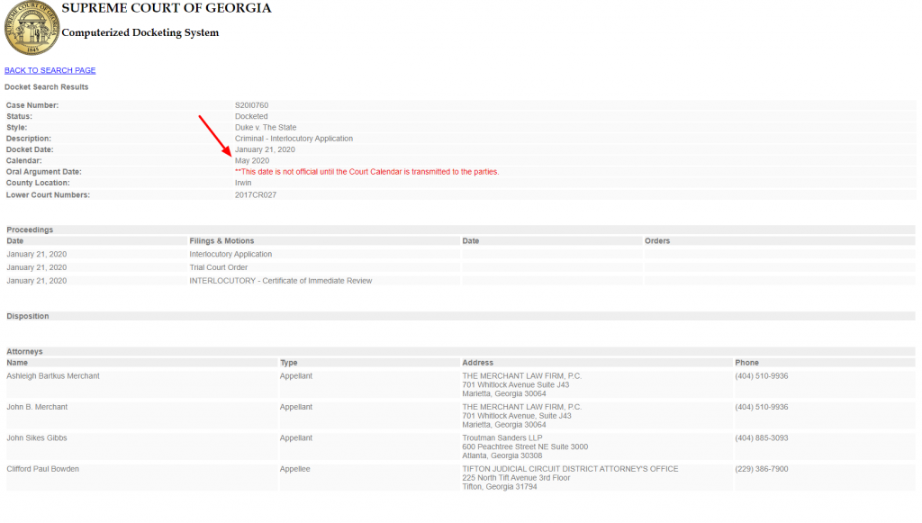 *Indicted (June, 2017) by a Ben Hill County grand jury indicted Dukes on 3 counts: concealing the death of another, 2 counts of making false statements, tampering with evidence & hindering apprehension of a criminal.
